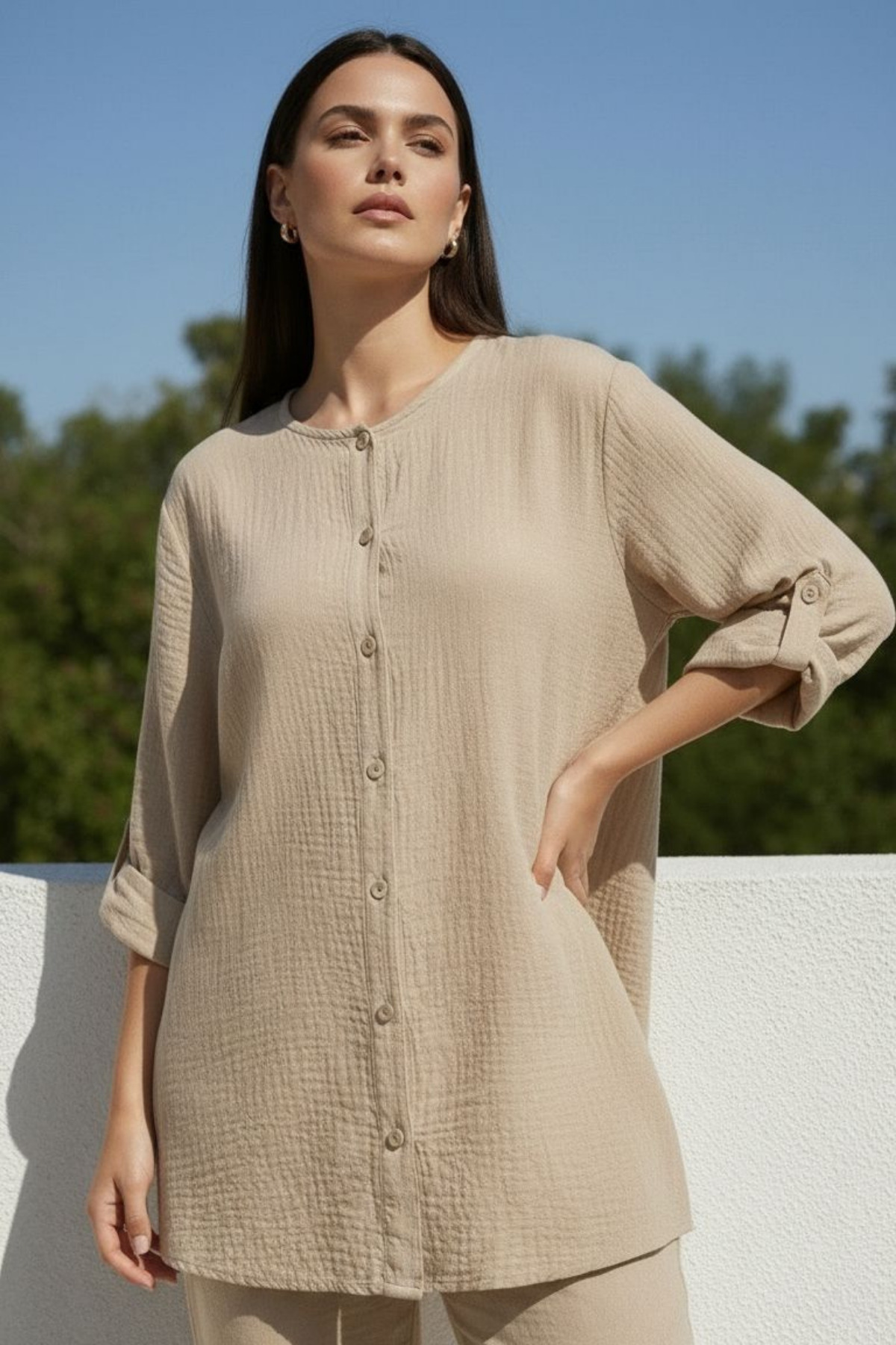 Curly BEJ MÜSLİN TUNİK Özellikleri