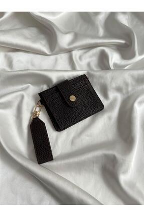 dericom Kadın Kırınkıl Kumaş Çıtçıtlı Ve Fermuarlı Şık Siyah Cüzdan Kartlık Aksesuar
