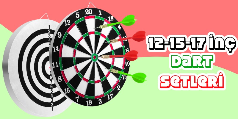 kutuTR 17 İnç Çift Taraflı Dart Tahtası Seti 6 Çelik Oklu Dart Hedef Tahtası Oyunu Takımı Dart Seti
