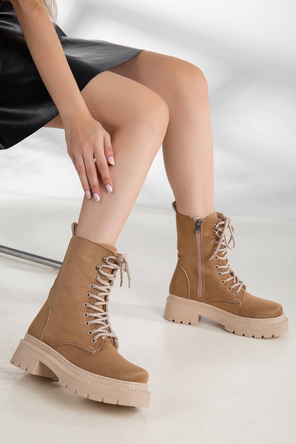 DARUGA Kadın Kalın Tabanlı Bağcıklı Fermuarlı Günlük Bot