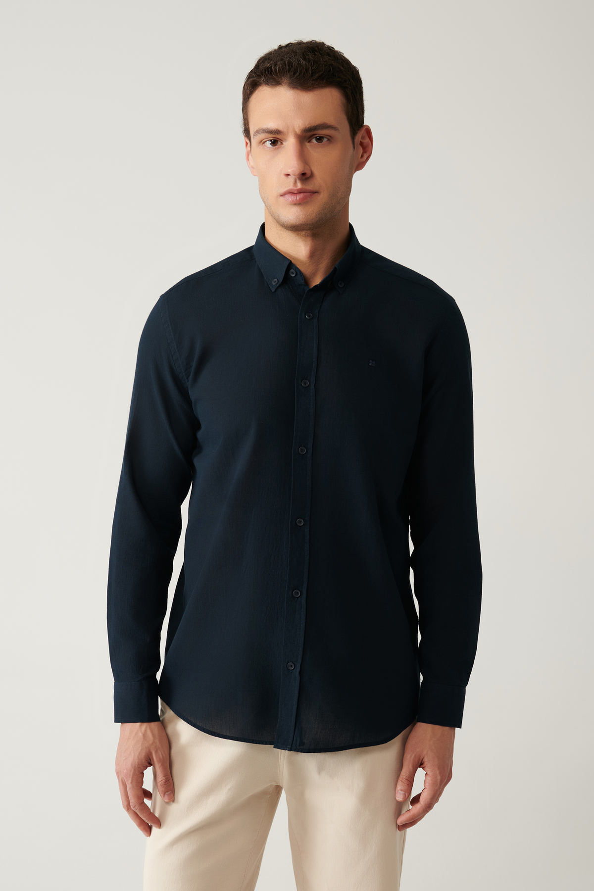 Avva Marineblaues Herrenhemd aus 100 % Baumwolle, dünn, weich, mit Knopfkragen 002206 Merkmale