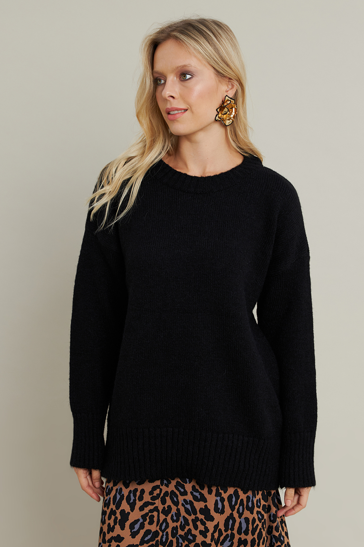 Cool & Modest Schwarzer, lockerer Damenpullover – MYV104 Merkmale