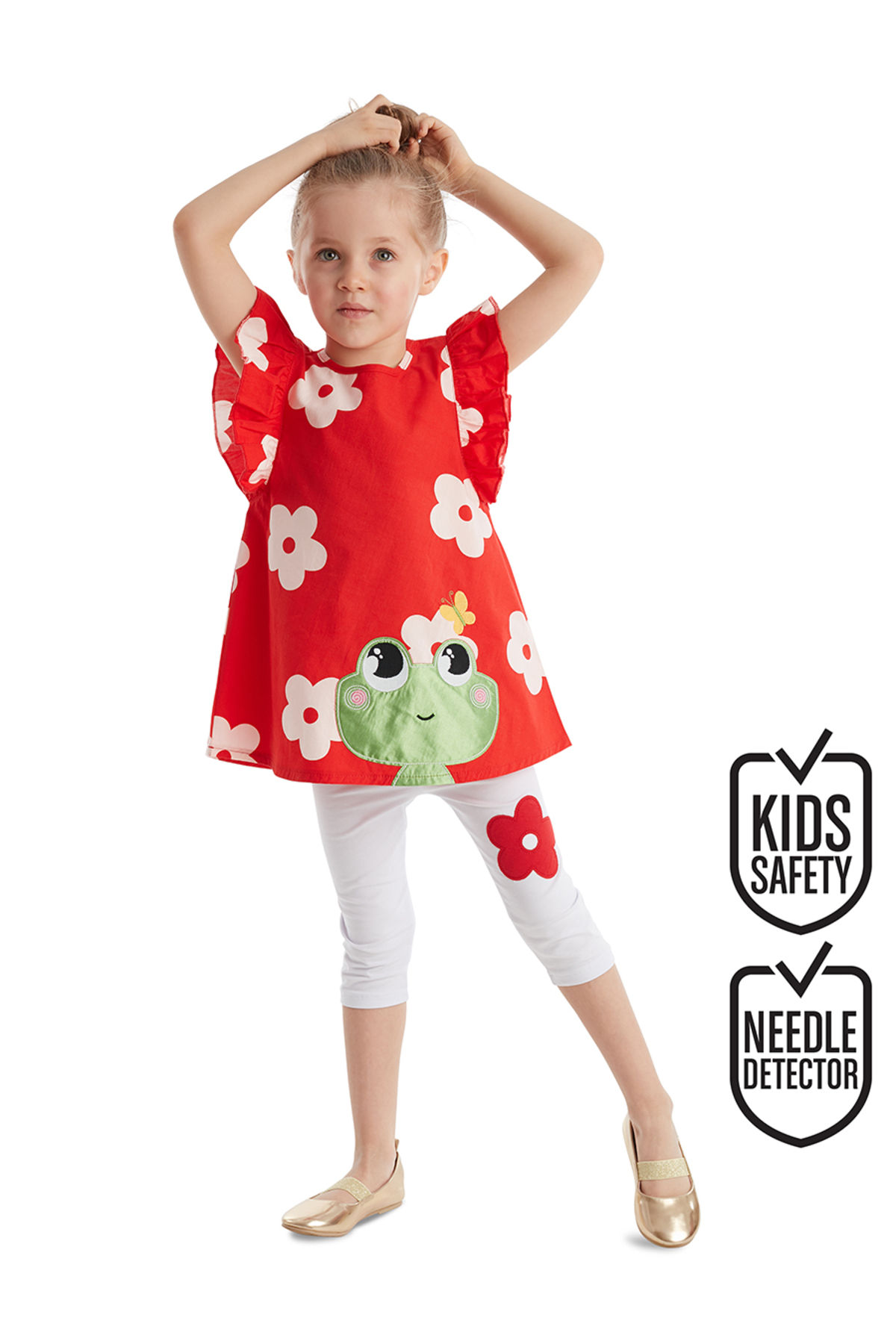 Denokids Frosch-Tunika-Strumpfhosen-Set für Mädchen in Rot und Weiß Merkmale