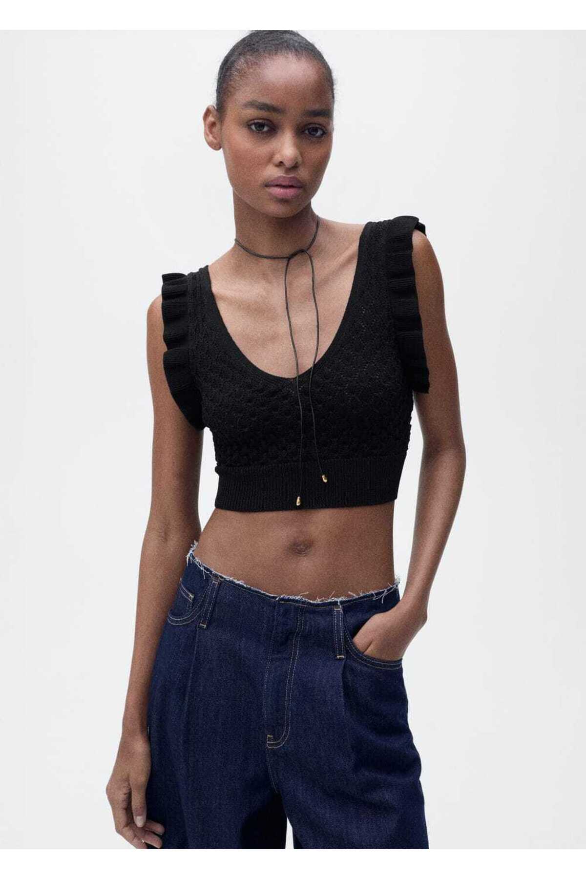 MANGO Woman Kurze Bluse mit Rückenbindung Merkmale