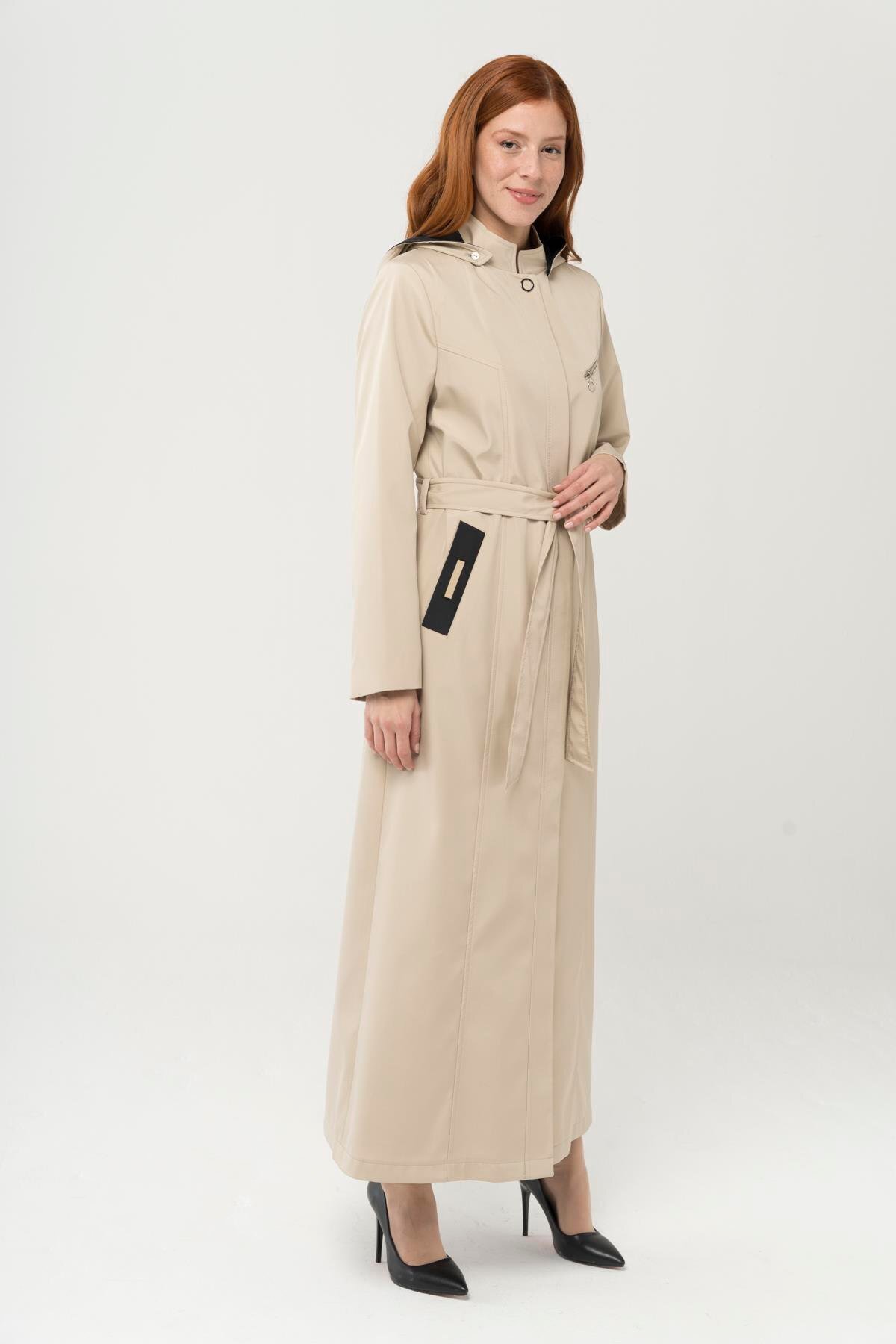 Olcay Abnehmbare Kapuze, Garni-detaillierter langer Trenchcoat-Übermantel STONE 4289 Merkmale