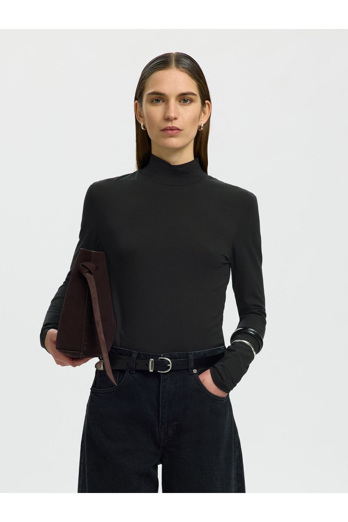 Selected Femme Oberteil mit langen Ärmeln Basic High Neck
