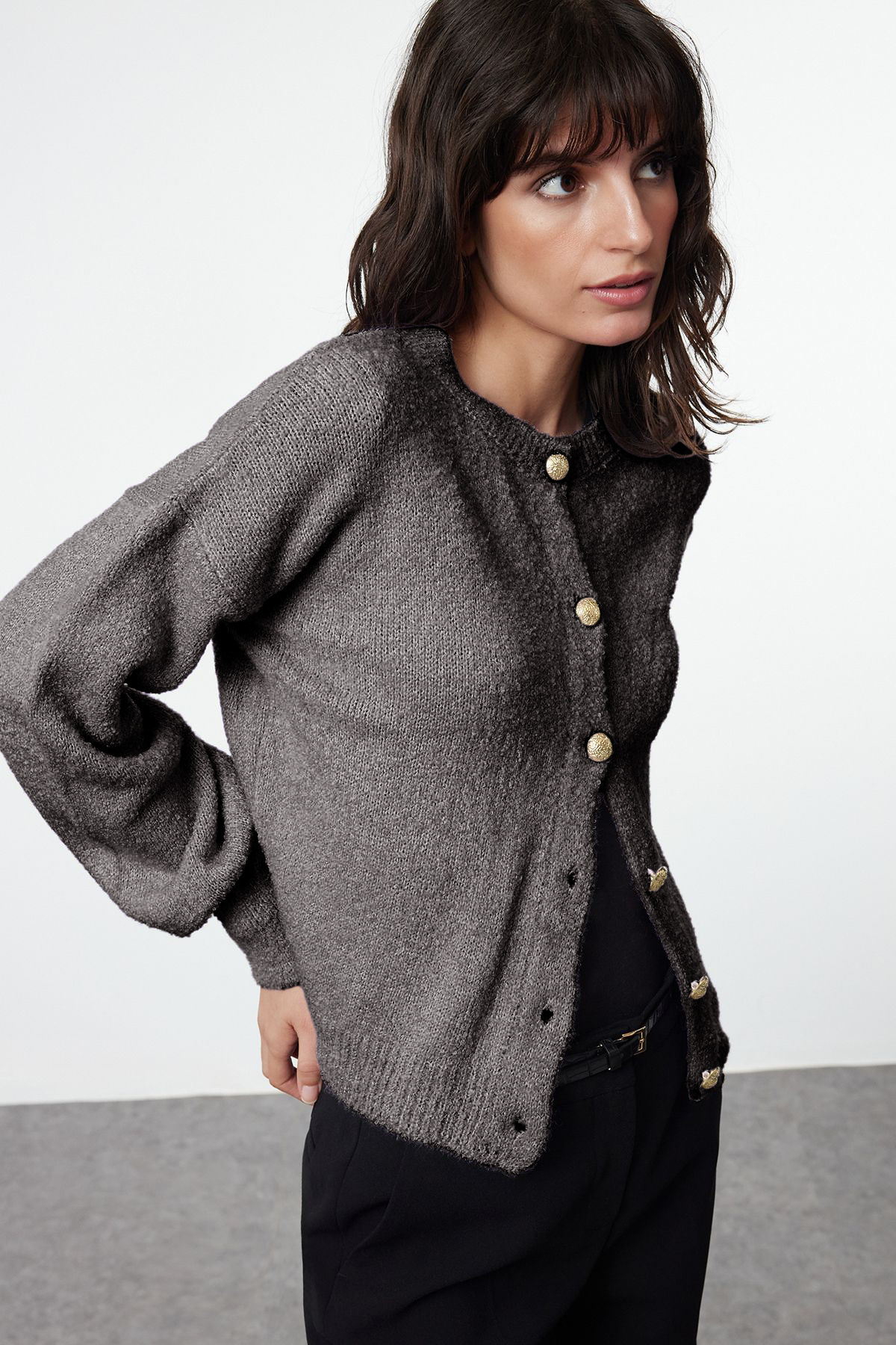 Trendyol Collection Anthrazitfarbene Strickjacke mit weichem Strukturdetail und Knopfleiste TWOAW25HI00147 Merkmale