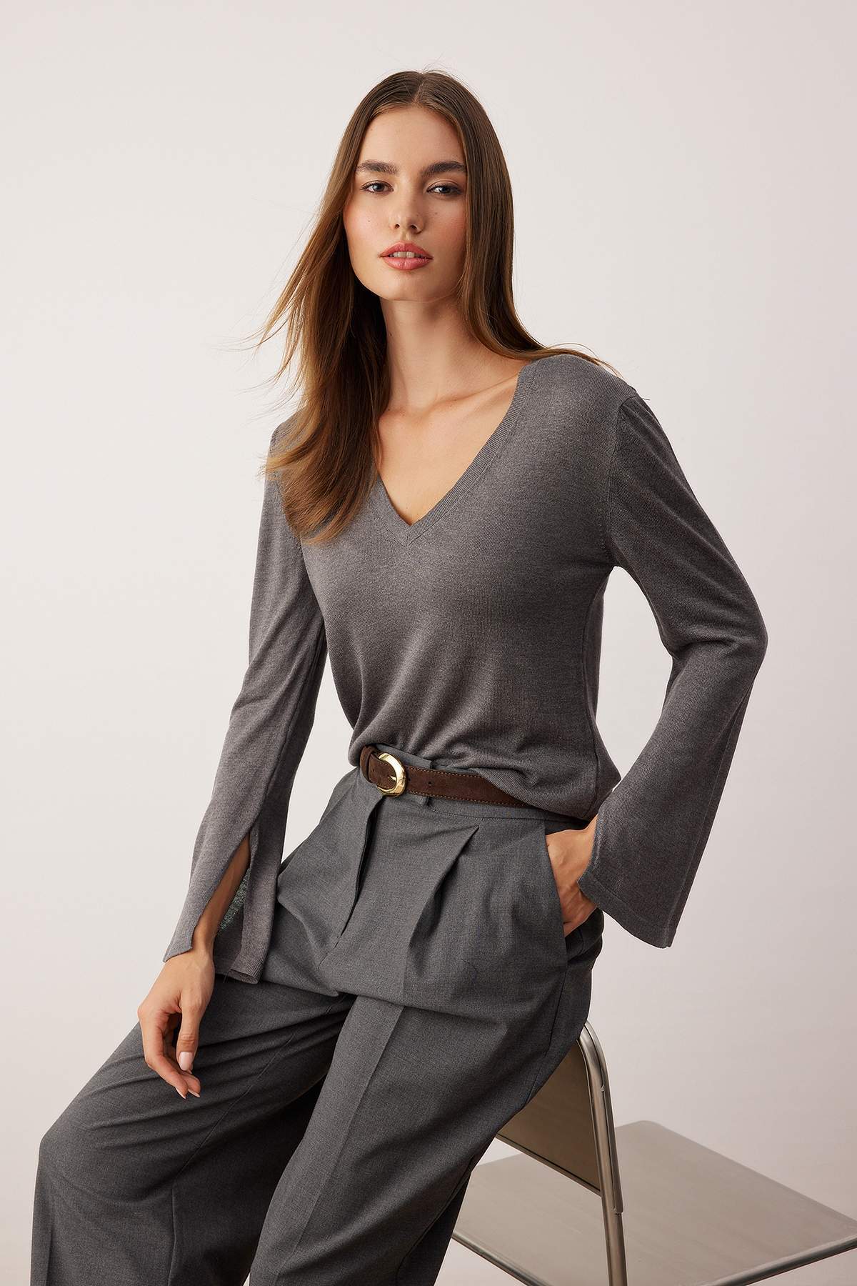 Trendyol Collection Anthrazitfarbener Basic-Strickpullover mit V-Ausschnitt TWOAW26KZ00101 Merkmale