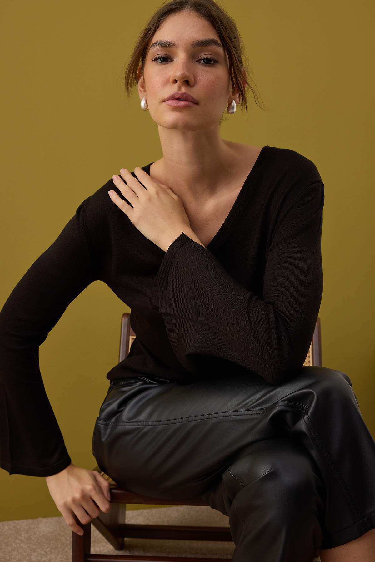 Trendyol Collection Schwarzer Basic-Strickpullover mit V-Ausschnitt | TWOAW26KZ0010101 Merkmale