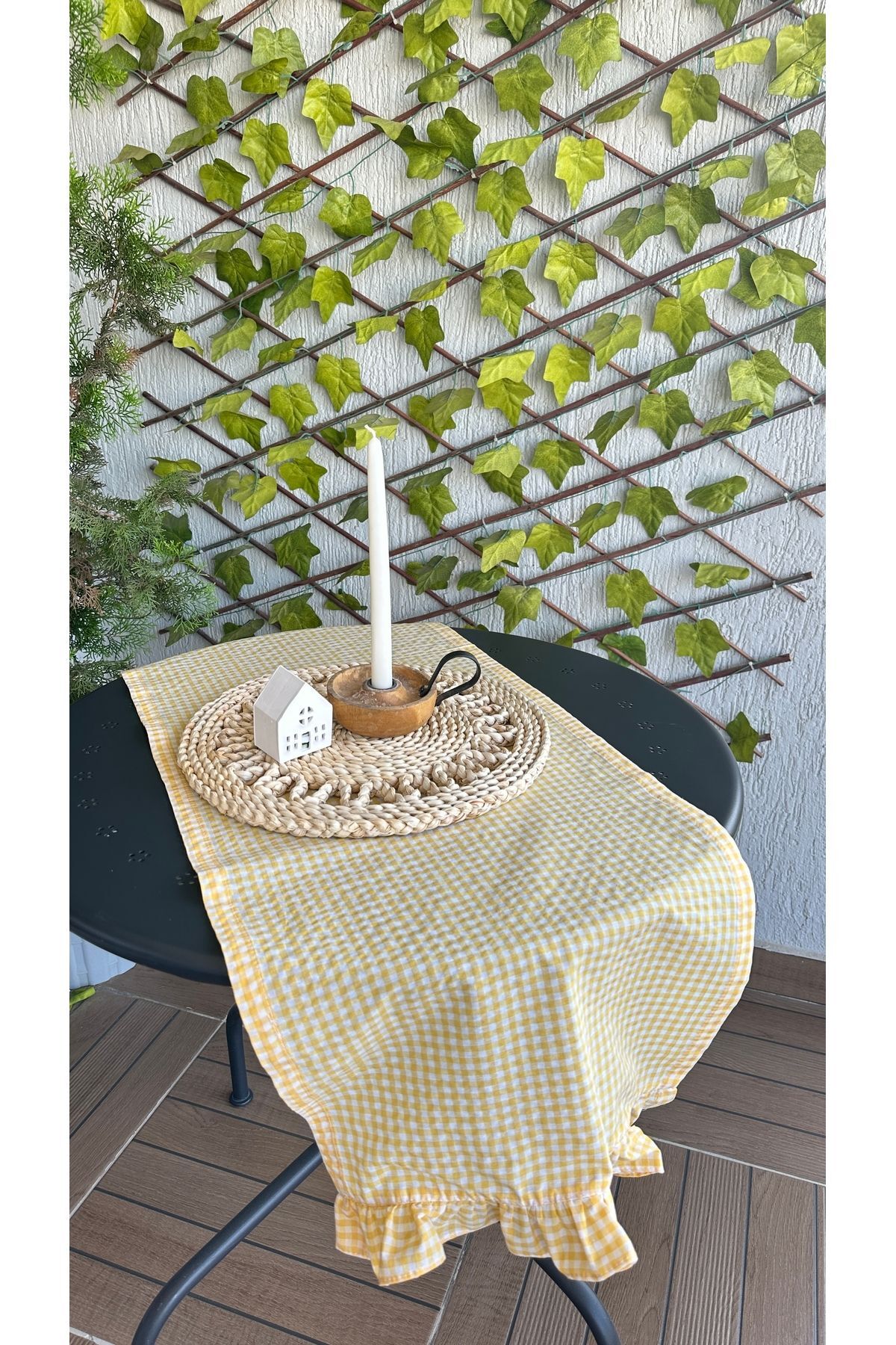 Decamor home Thin Keten Kumaş Sarı Mini Pötikateli Keten Runner