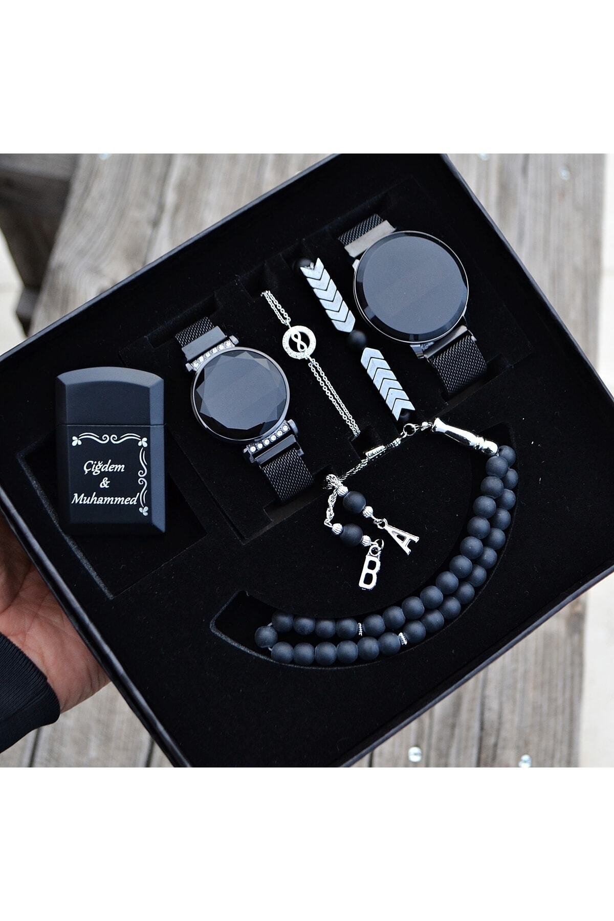 DEEPWELL Dokunmatik Çift Kol Saatleri Çakmak Tesbih Bileklik Seti Pk100