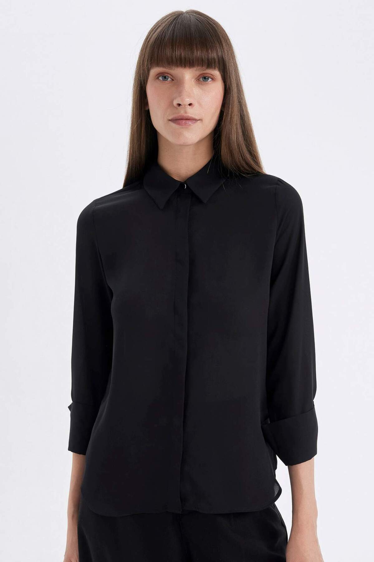 DeFacto Basıc Krep Dokuma Siyah Gömlek D3151AX24AU Özellikleri