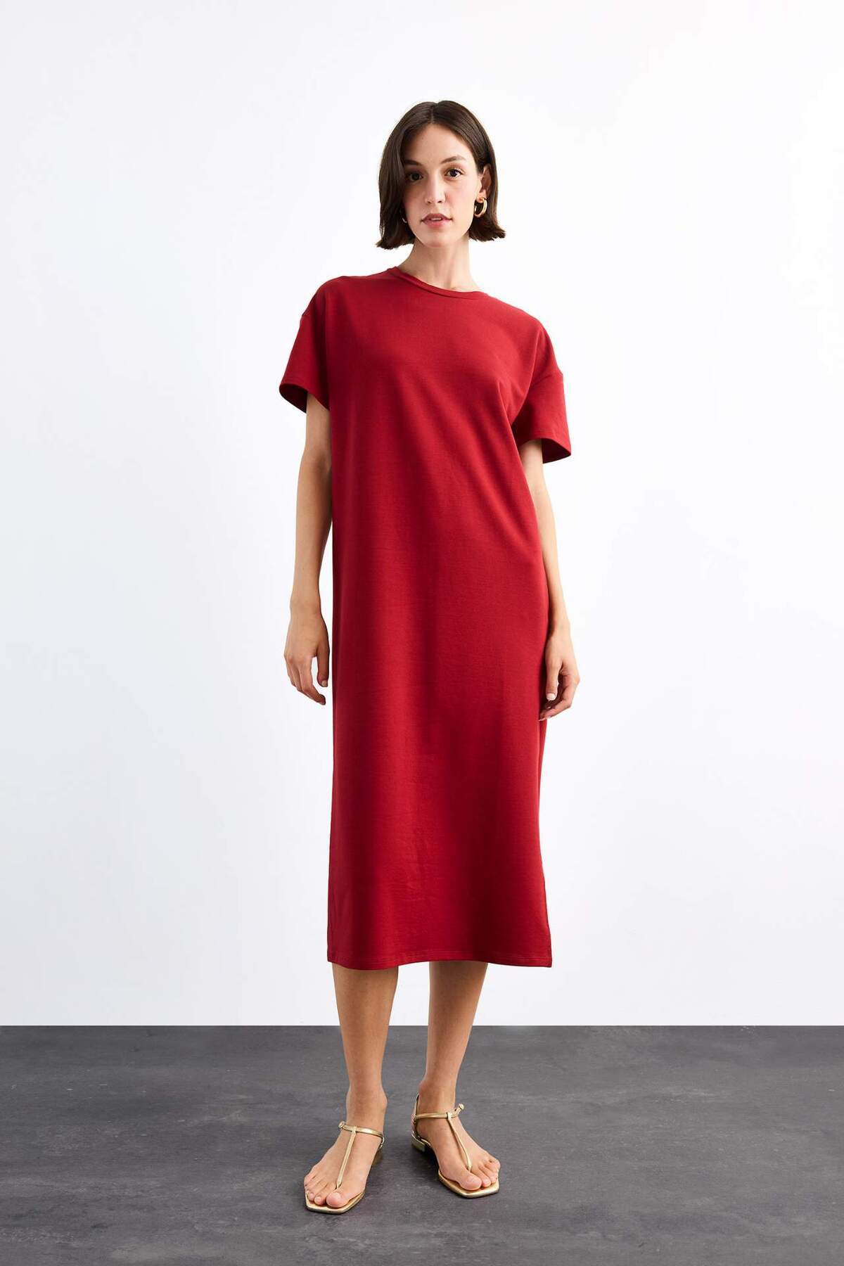 Defacto Bisiklet Yaka Basic Düz Kısa Kollu Midi Elbise G1059AX25SM