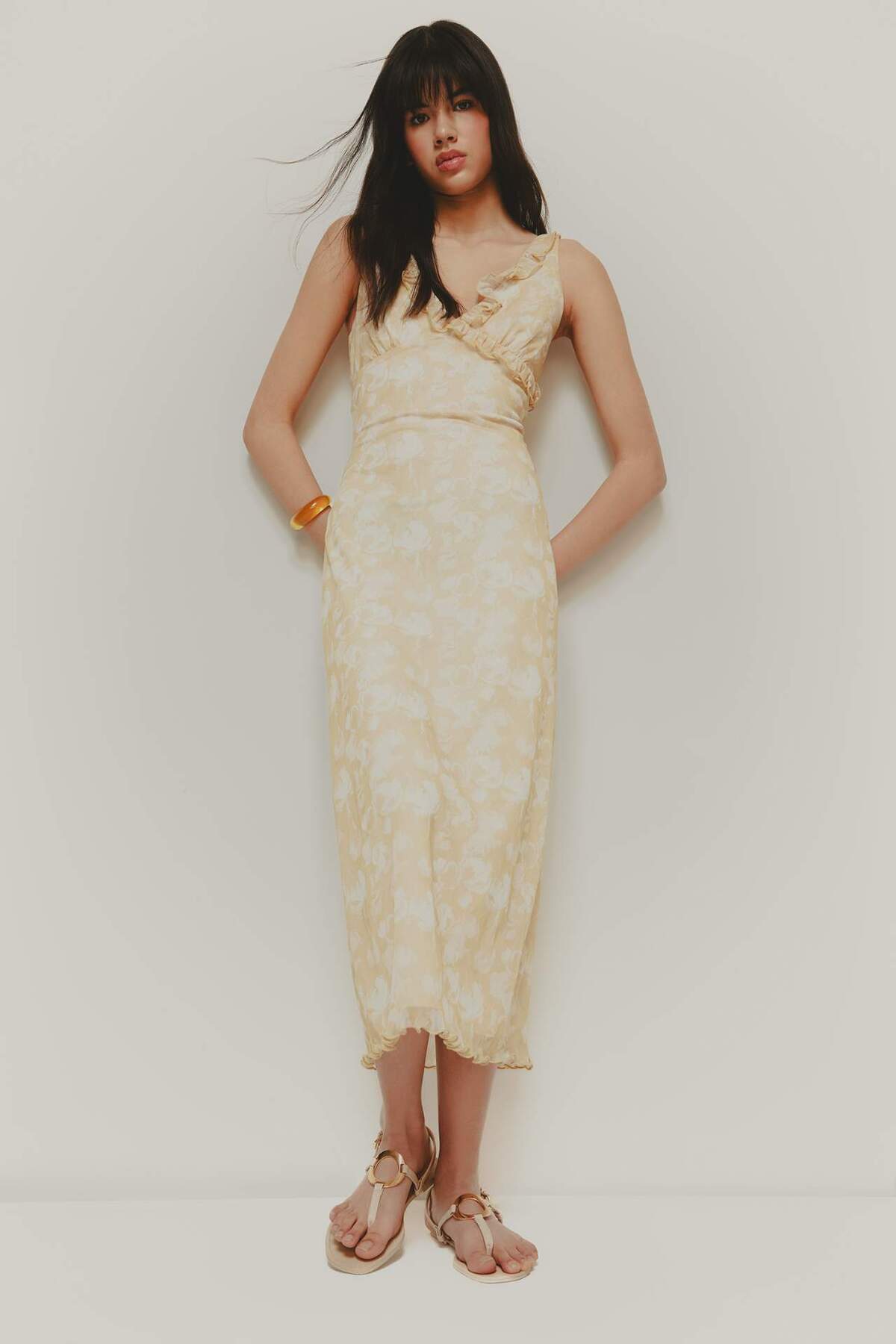 DeFacto Bodycon Vücudu Saran Desenli Tül Askılı Midi Elbise E6809AX25SP Özellikleri