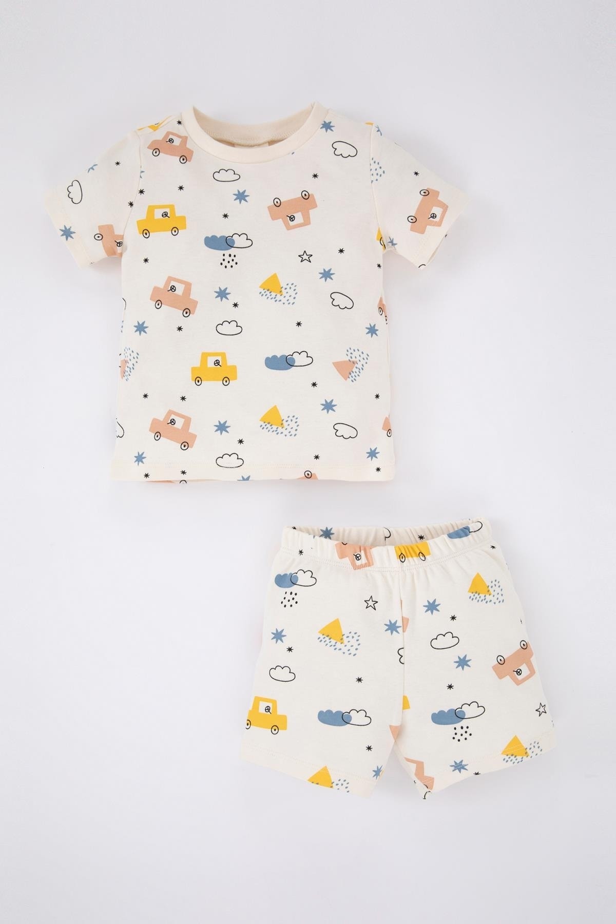 Defacto Erkek Bebek Pijama Takımı Desenli Ribana Organik Pamuk Kısa Kollu Üst Şort Z4292A223SP