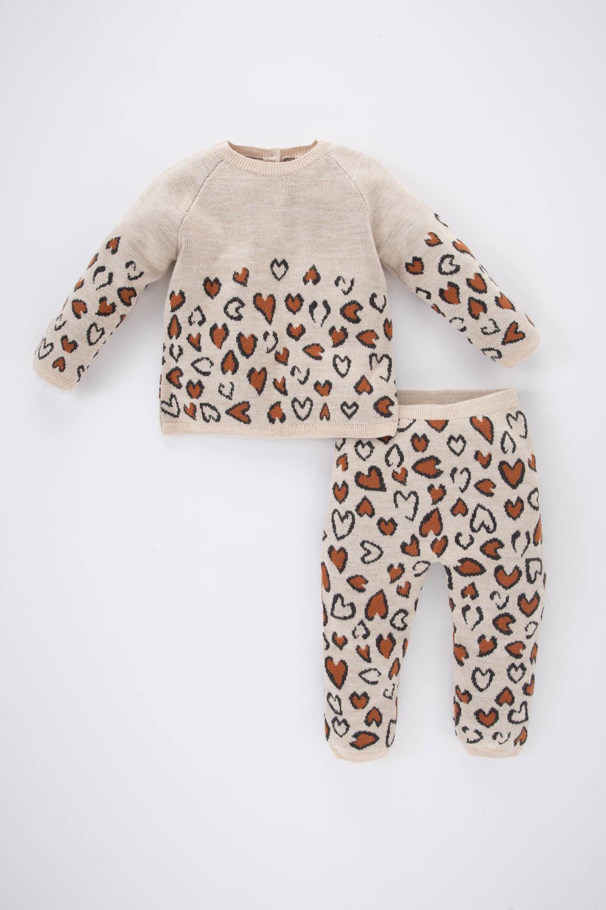 Defacto Kız Bebek Leopar Desenli Triko Kazak Alt 2'li Takım A4340a523wn