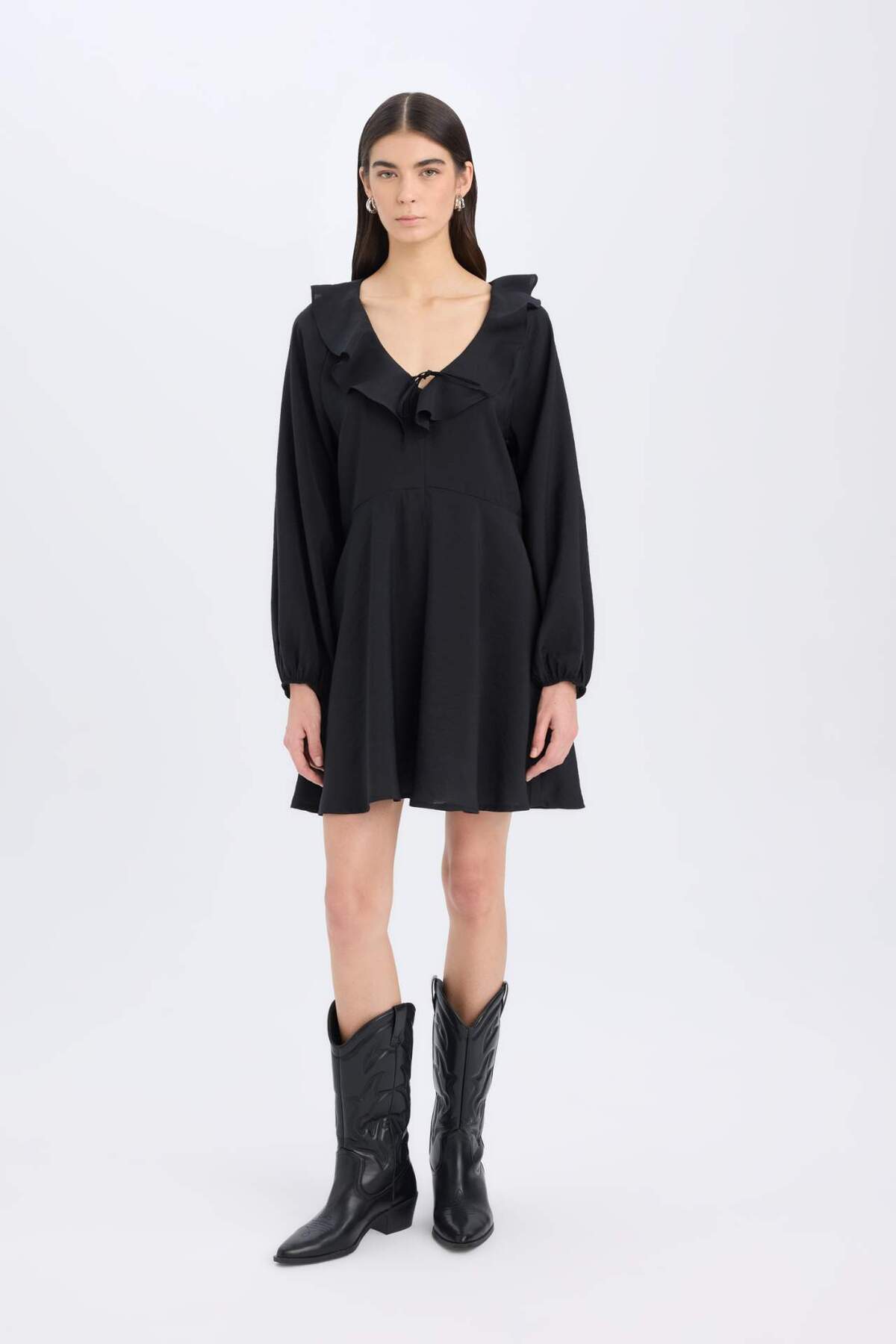 DeFacto V Yaka Basıc Modal Siyah Mini Elbise E4213AX24WN Özellikleri