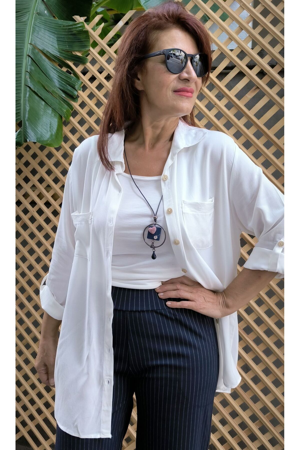 DenizEge Cepleri Pullu Viskon Gömlek Beyaz Özellikleri