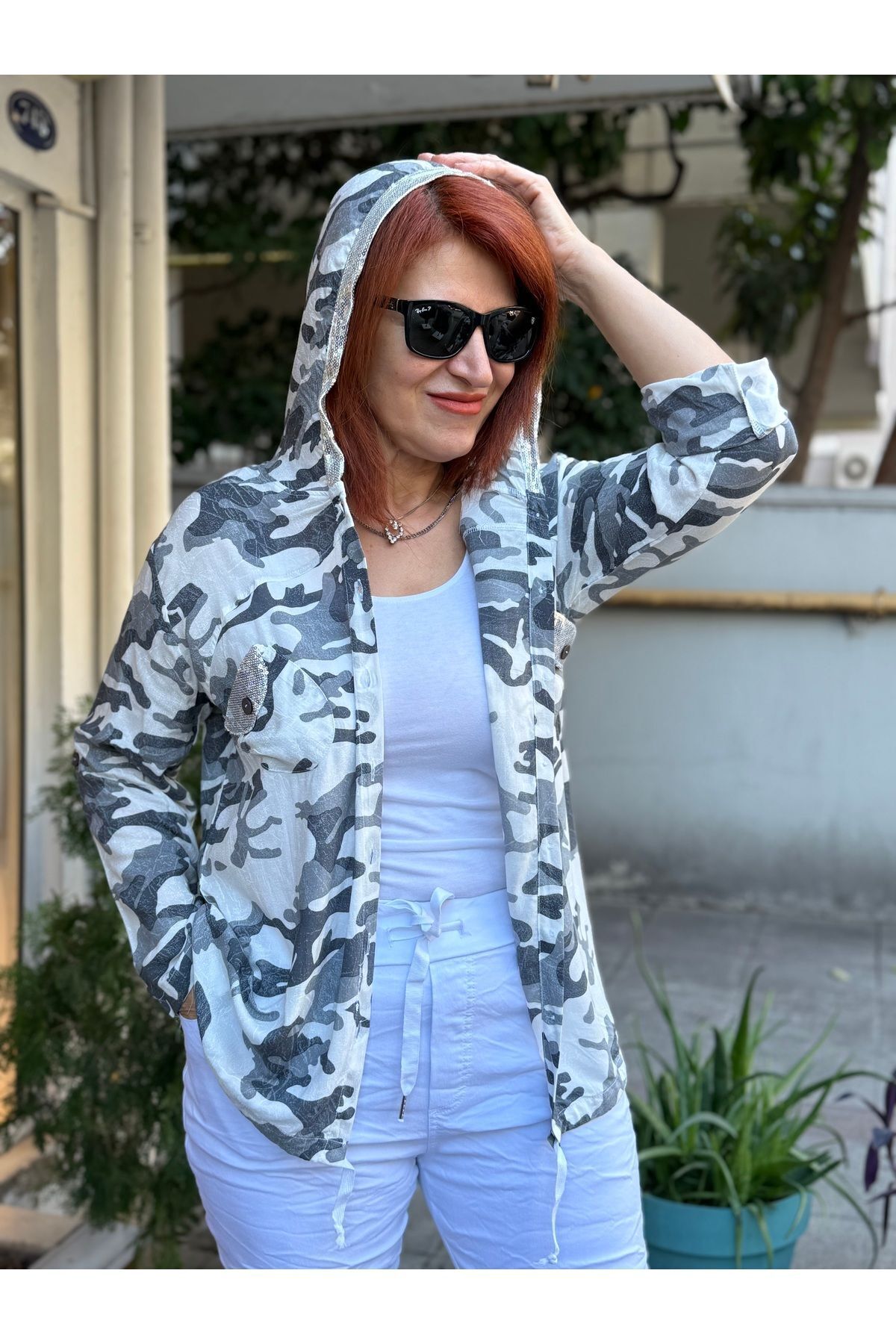 DenizEge Kamuflaj Viskon Kapüşonlu Gömlek