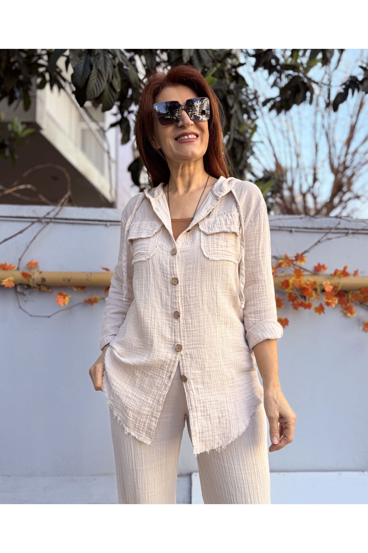 DenizEge Müslin Kapüşonlu Gömlek Bej Özellikleri