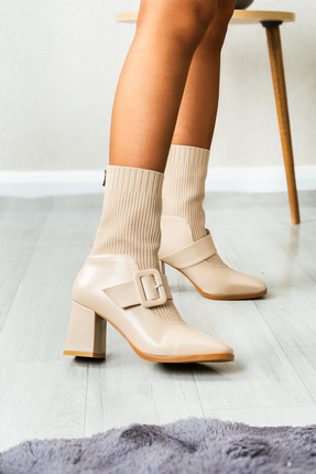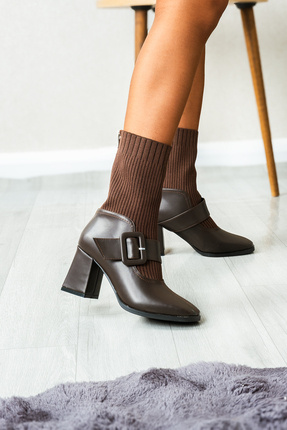 ELEVAM Kadın Acı Kahve Küt Burun Topuklu Bot