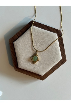 AGG TASARIM Taşlı Kahverengi Deri Kolye