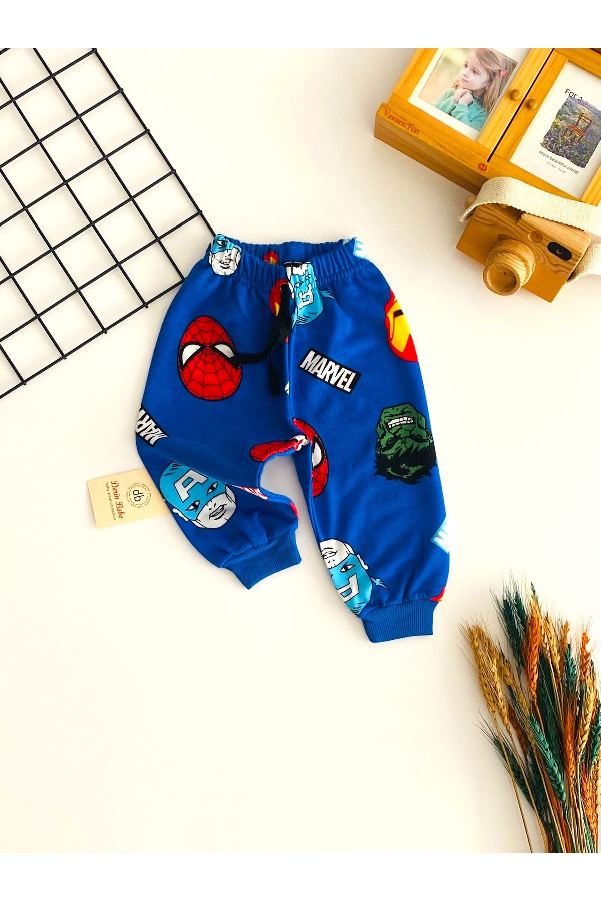 DERİNBEBE Neşeli Bebekler Marvel Baskılı Tek Alt Mavi Özellikleri