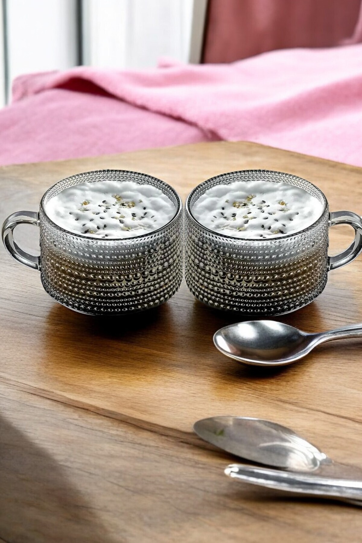 devigo 2'li Lüks Kristal Cam Bardak Seti Kulplu Magnolya Tatlı Kasesi Tatlılık Kase Kupa 410ml
