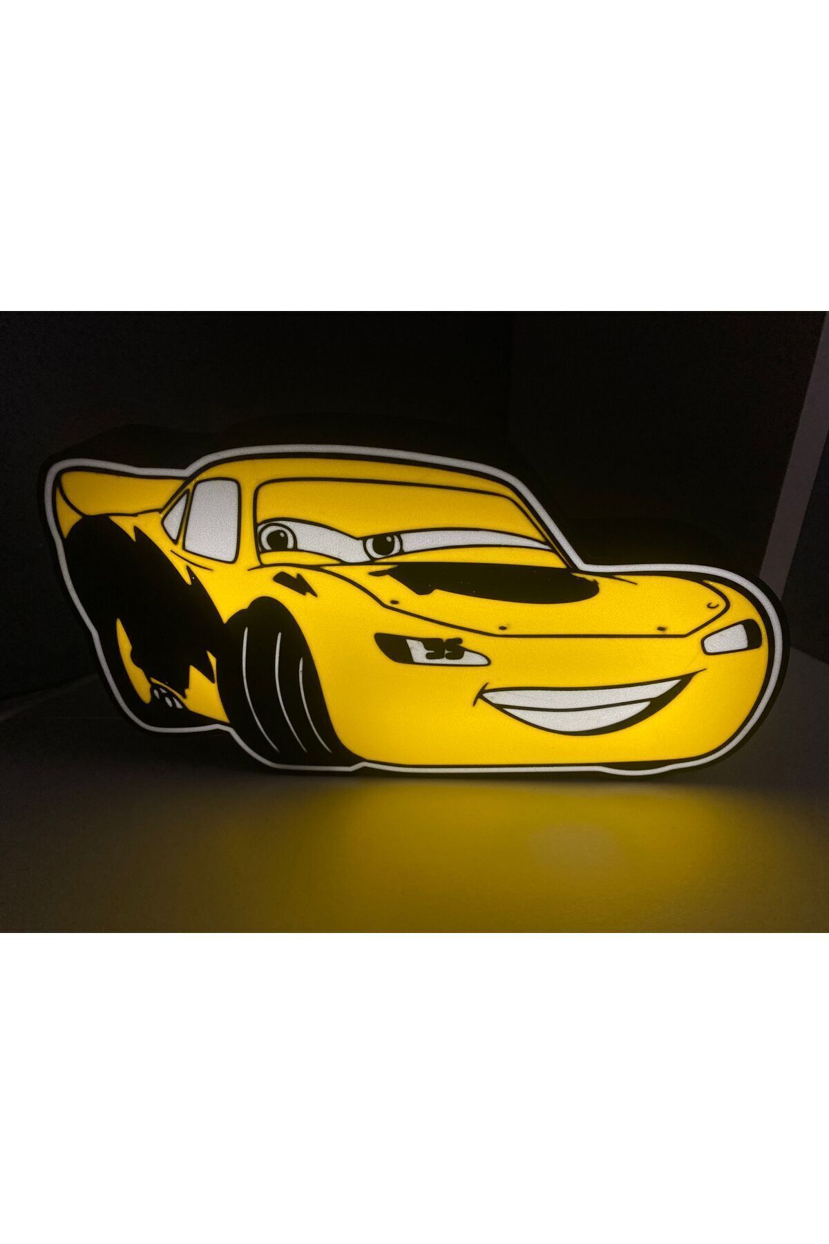 Devotech Şimşek Mcqueen Araba Led Işıklı Lightbox Masa Lambası Sarı