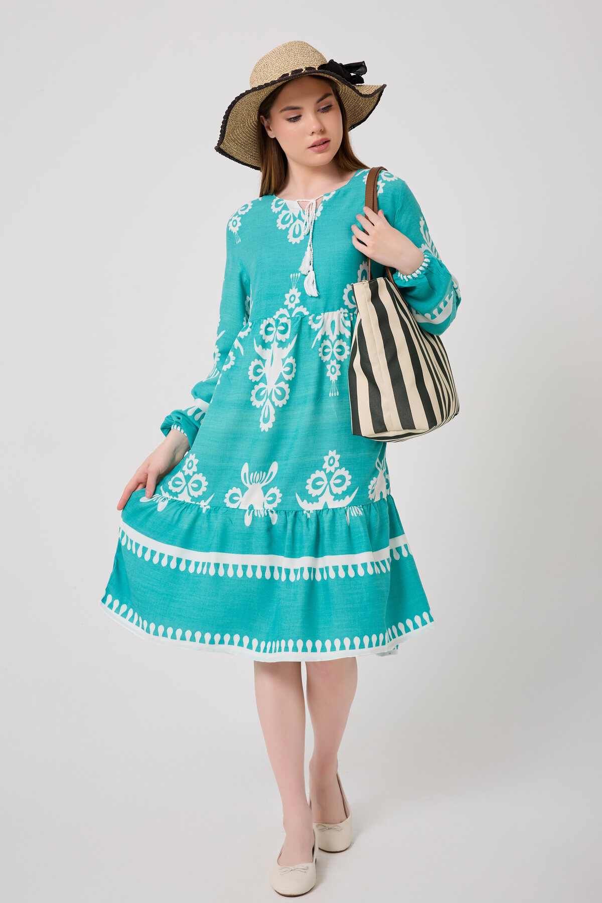 DEVRAN V Yaka Pamuklu Viskon Elbise