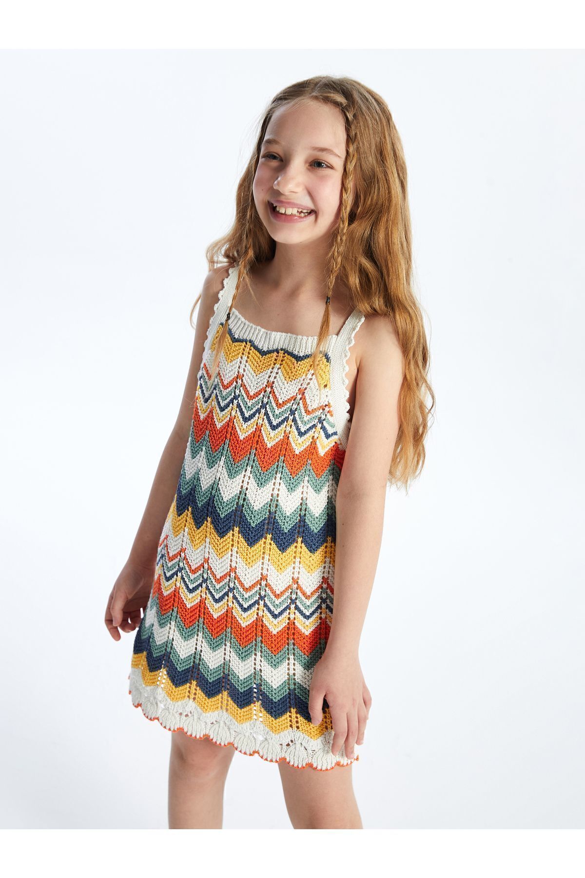 Dexia Soledad - Örgü Detaylı Askılı Zigzag Desenli Triko Elbise - Multicolor Özellikleri