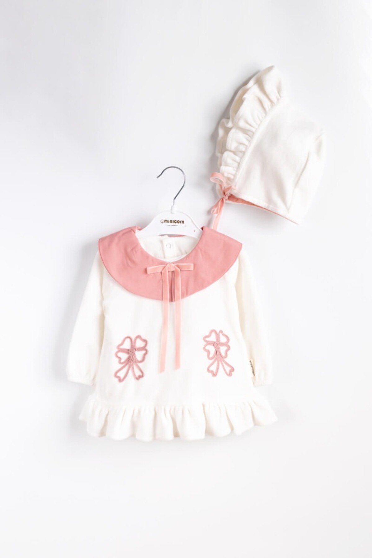 DIDuStore Minicorn Kız Çocukları İçin Çiçek Nakışlı Elbise ve Bere Seti