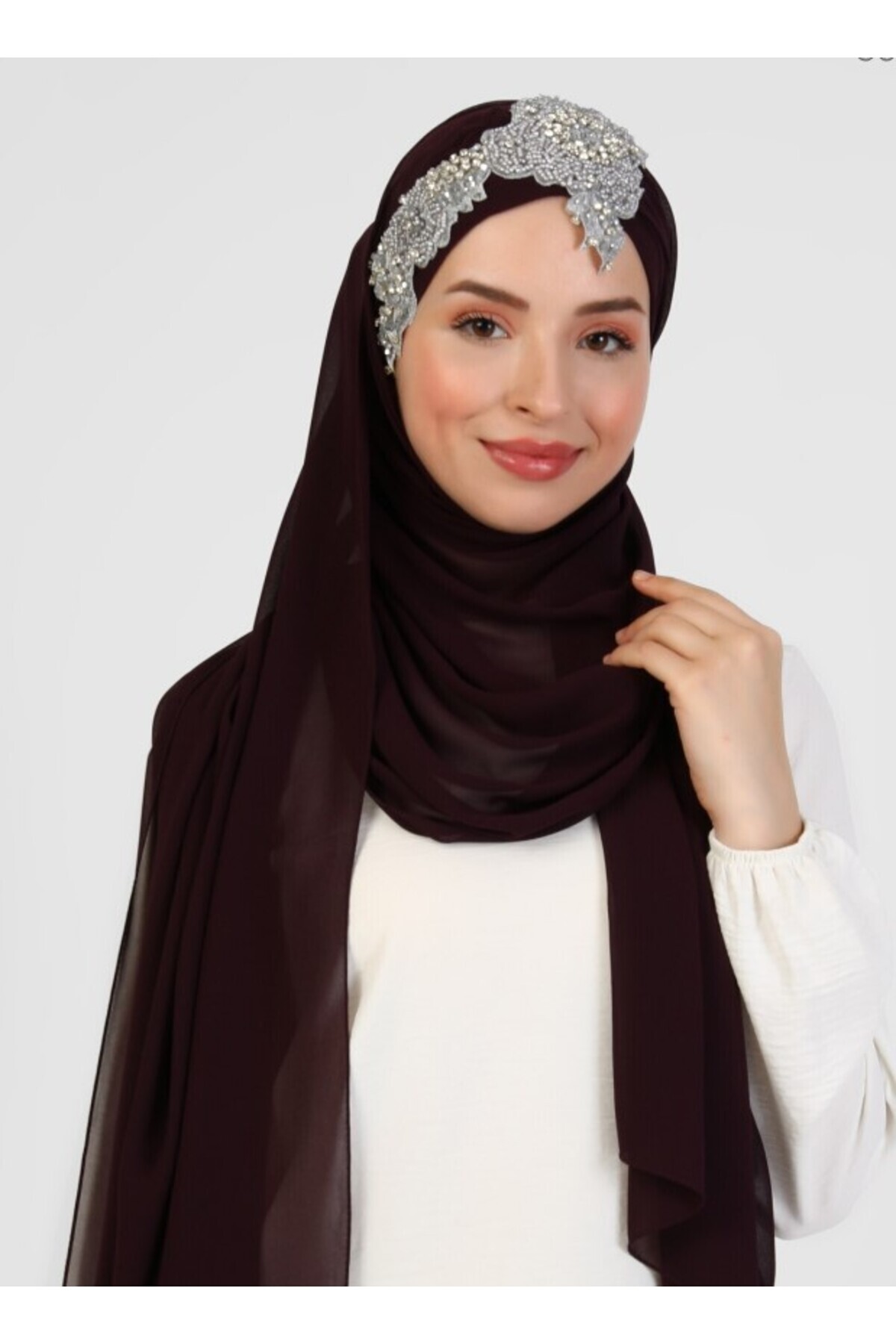 Differenza Flora El İşlemesi Şifon Şal - Koyu Mürdüm