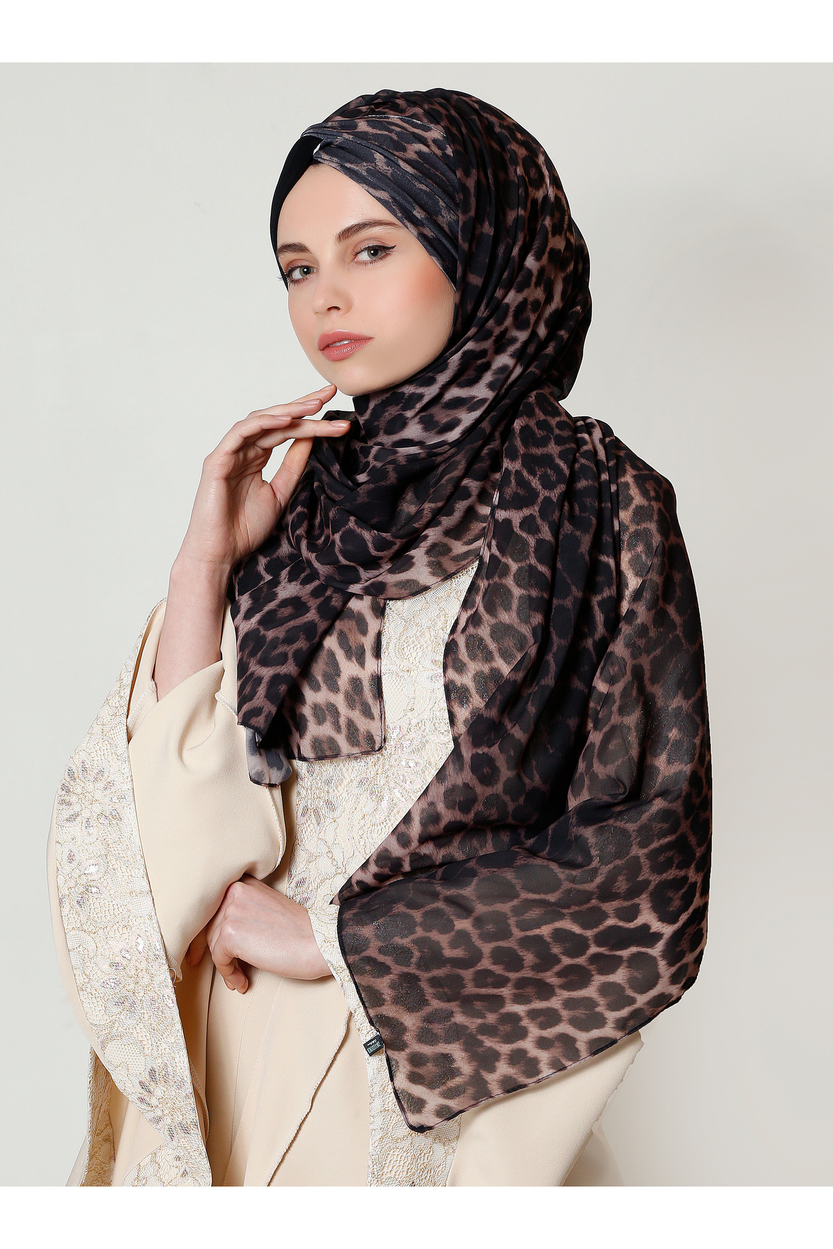 Differenza Leopar Düğüm Şifon Şal - Siyah Tek Taraf