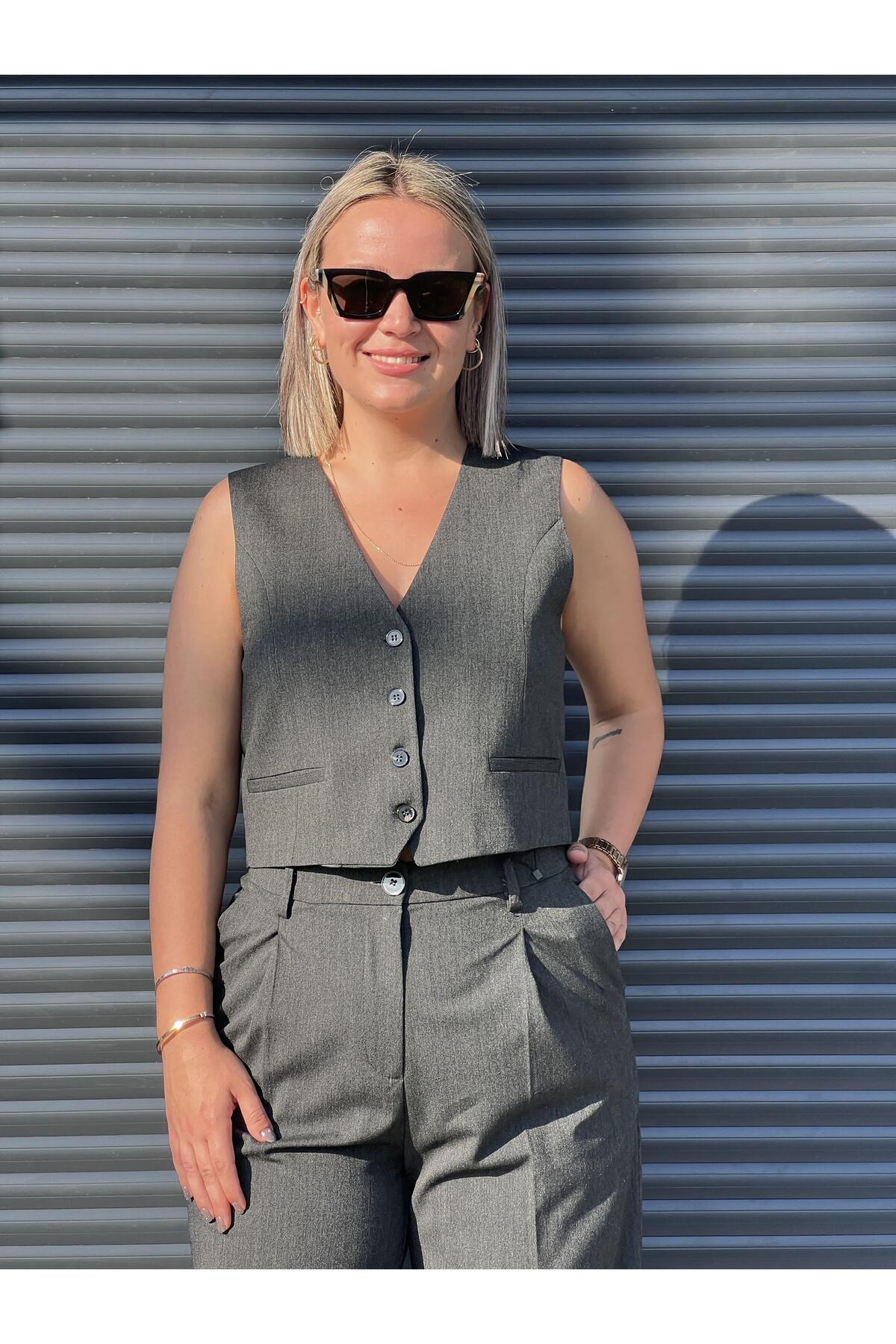 Dilvin Antrasit Düğmeli Yelek Özellikleri