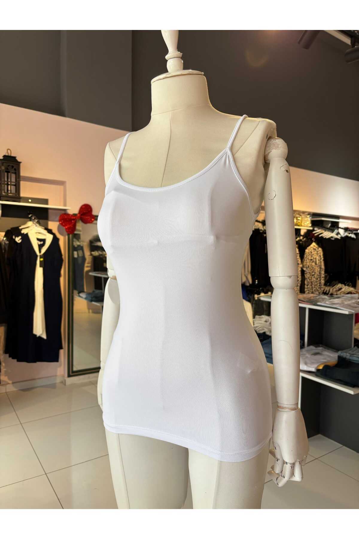 Dilvin beyaz ince askılı esnek basic atlet Özellikleri