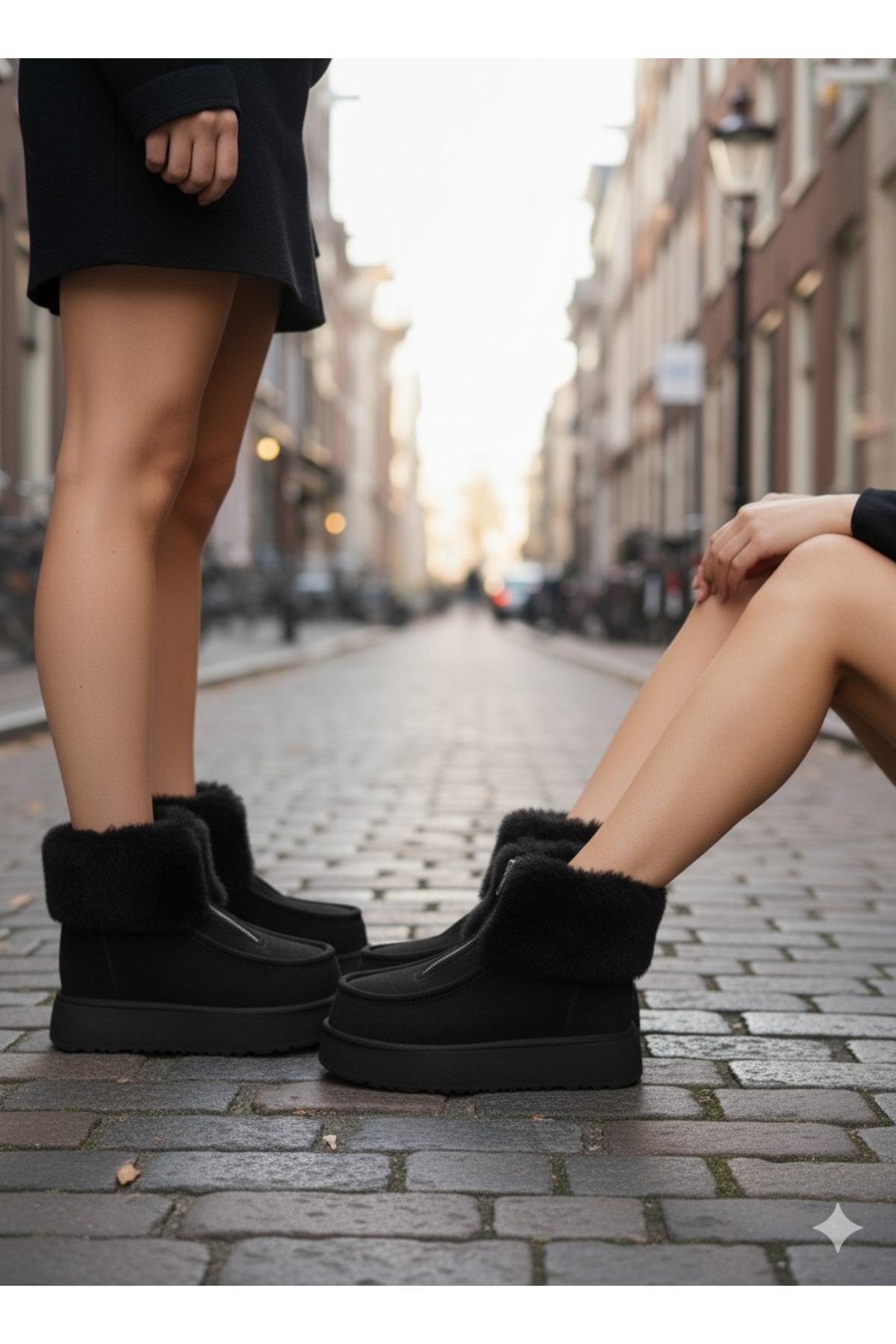 DİORİN Kışın Vazgeçilmezi: Önü Fermuarlı Kalın Tabanlı Sıcak Tutacak Kürklü Şık Bot”