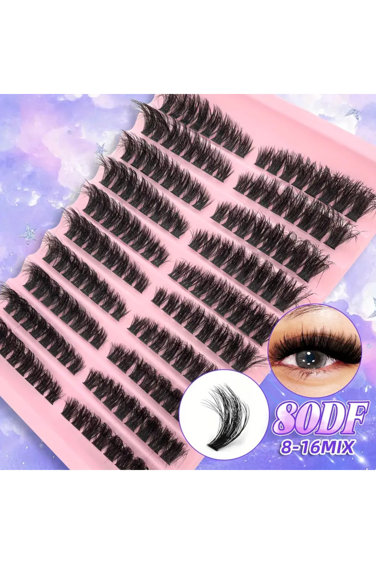 DIYEYELASH 160 Adet Takma Kirpik Küme Seti 80DF Spiky Doğal Hafif Volüm Yumuşak Bantlı Yeniden Kullanılabilir