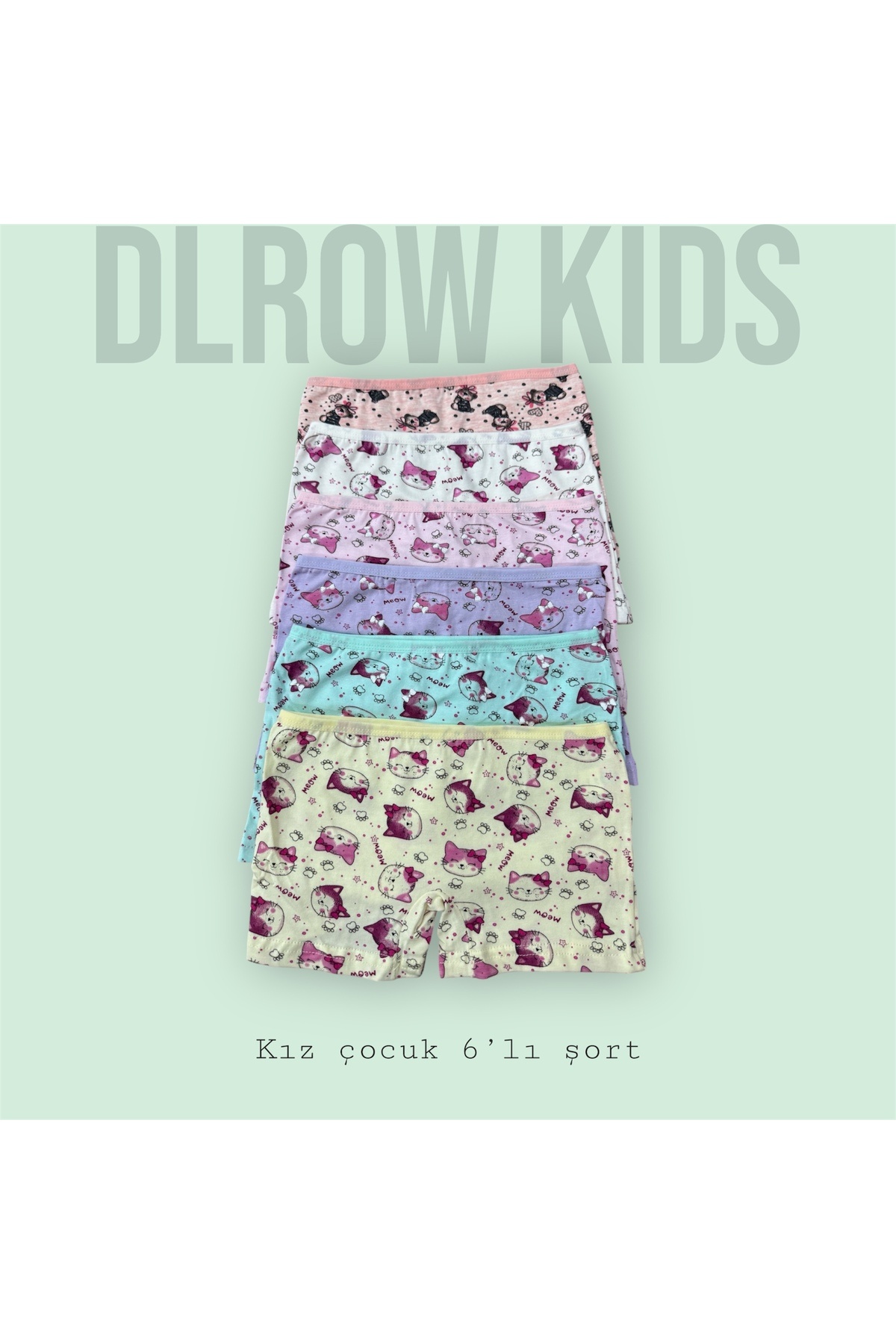 DLROW kız çocuk 6'lı şort baskılı desenli