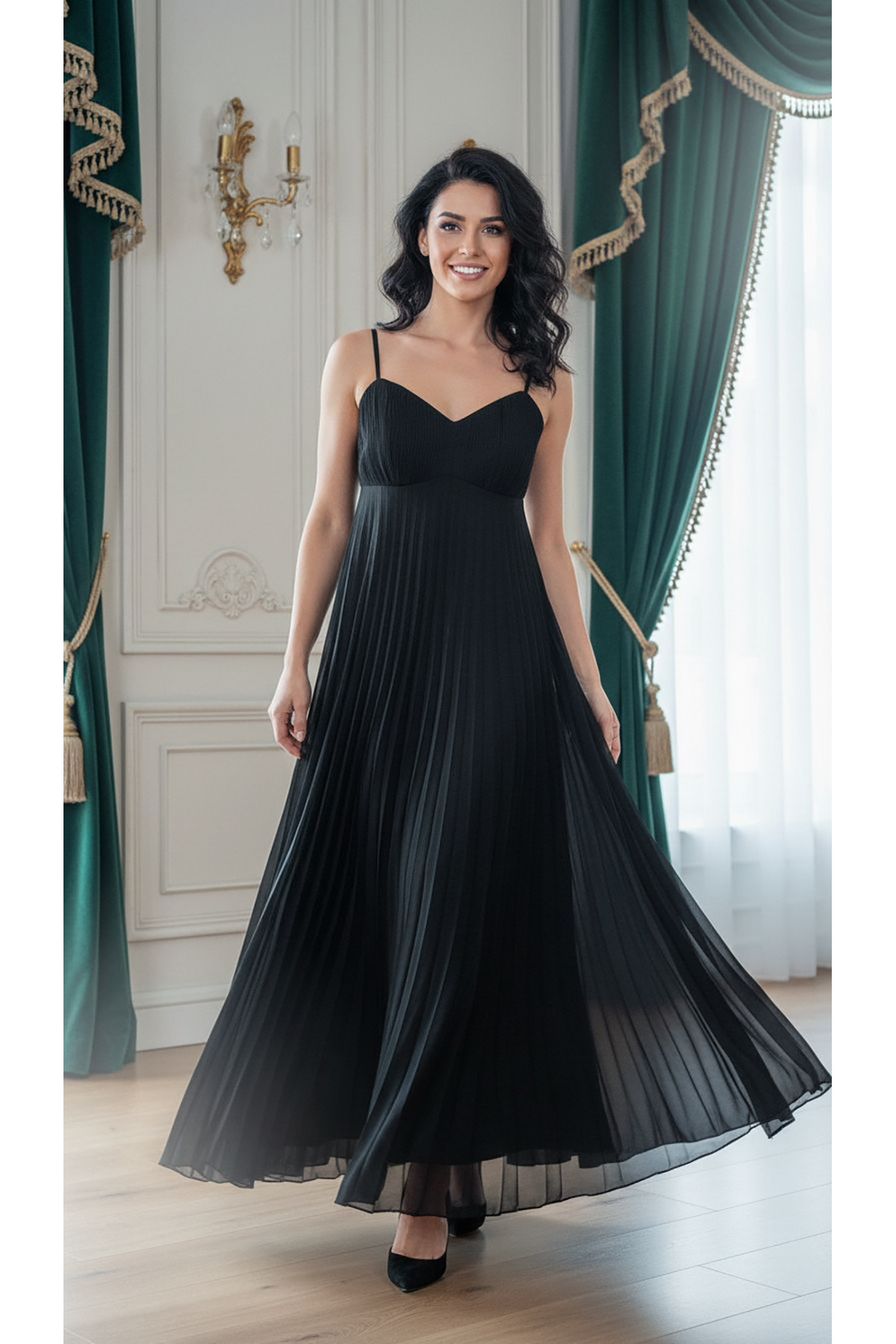 dml giyim Pliseli şifon elbise
