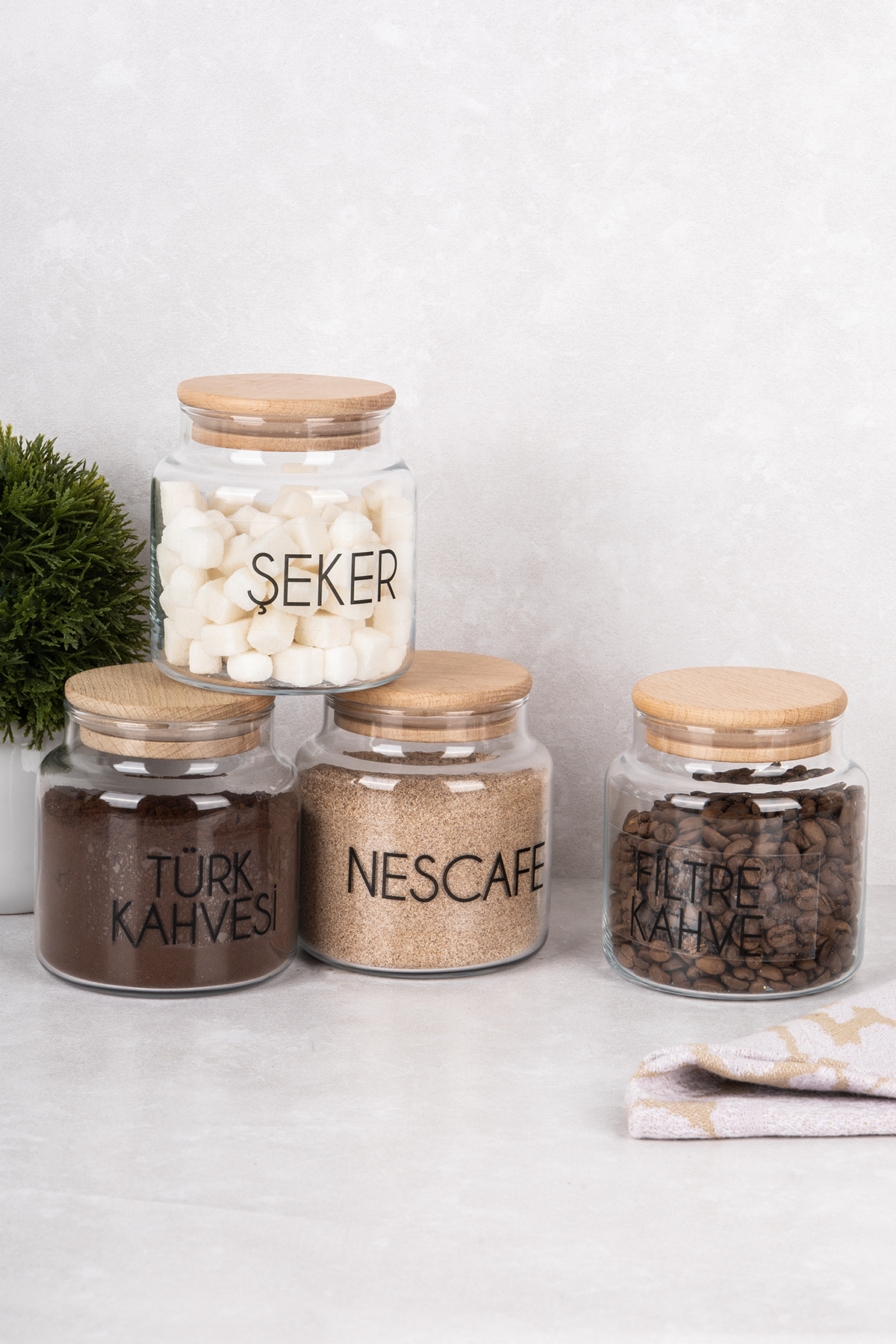 DNS HOME 4 Adet Cam Kavanoz Seti Vakum Kapaklı Saklama Kabı Şeffaf Etiket Hediyeli Kahve Köşesi Seti 500 ml Özellikleri