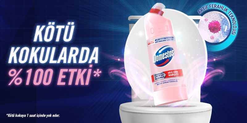 Domestos banyo temizlik ürünleri arasında özel bir yeri bulunan tuvalet blokları, klozetlerin sürekli olarak ferah ve hijyenik kalmasını kolaylaştırıyor. Klozete yerleştirilen ve sifon her çekildiğinde aktif hale gelen Domestos hijyen ürünleri, kalıcı koku sağlamaları yanında kireci önlemede önemli bir rol üstleniyor. Tuvaletlerin çok daha uzun süre parlaklığını korumasını kolaylaştıran tuvalet blokları, temizlik ile elde edilen hijyenin korunmasını da sağlıyor. Okyanus esintisinden çam esintisine, manolya ve lavanta kokularından limon ferahlığına pek çok seçeneği bulunan tuvalet blokları, uzun süreli beyazlık için pratik bir çözüm oluşturuyor. Domestos ıslak mendil hızlı ve etkili temizliğe ihtiyaç duyulan durumlarda kurtarıcı rol oynuyor ve oldukça pratik biçimde hijyen sağlıyor. Özel formülü ve etkili kokusu ile ferahlık veren Domestos ıslak mendil, yüzey temizliği için de gönül rahatlığıyla kullanılabiliyor. Total hijyen sağlayan yüzey temizleyici Domestos mendil seçenekleri, tek tek satın alınabildiği gibi markanın bazı temizlik ürünü setlerinde de yer alıyor. Islak mendiller pratik ve konforlu kullanımlarıyla ev dışı ortamlarda hijyen sağlama ihtiyacı duyulduğunda kurtarıcı bir rol üstleniyor.