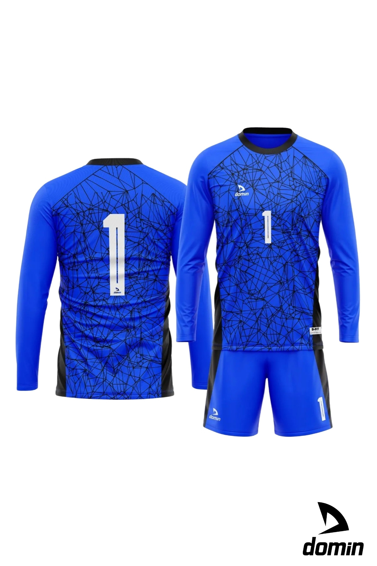DOMİN SPOR Erkek Uzun Kol Mavi Kaleci Forması Maç Forması Futbol Forma Ve Şort Seti