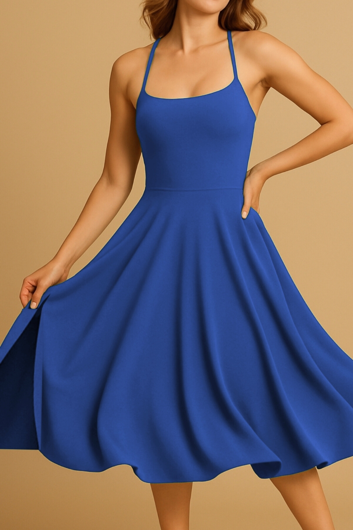 Due Stelle Daire Kesim Çift Yırtmaçlı Çapraz Askılı Midi Tango Elbisesi, Dans Elbisesi