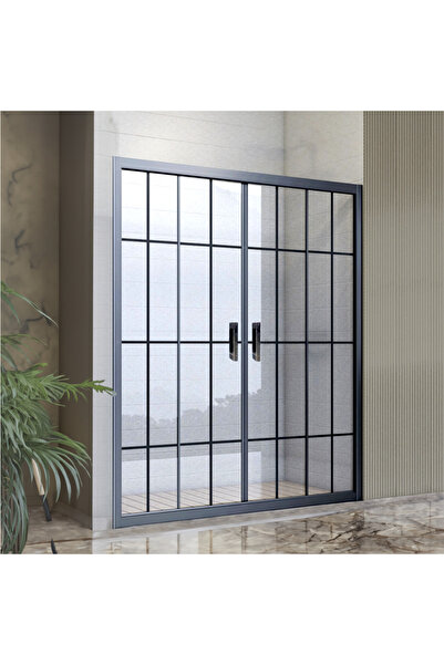 Durul Duşakabin 90x90 Kare 5mm Siyah Çizgi Yükseklik 190cm