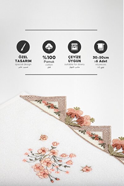 Durul Kadife Lüks Nakışlı Gipürlü Çeyizlik El Havlusu 6 Lı Paket