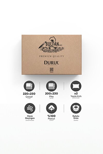 Durul Vintage Çift Kişilik Pike Takımı, %100 Pamuk, Kanaviçeli, Güpürlü, Yatak Örtüsü Bej (ÇARŞAFLI)