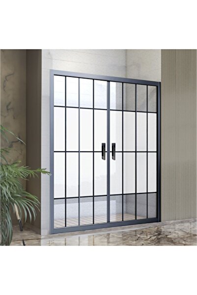 Durul Duşakabin Ön Cephe 5mm Siyah Çizgi Ortası Buzlu Yükseklik 190cm
