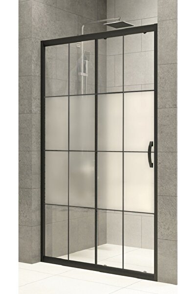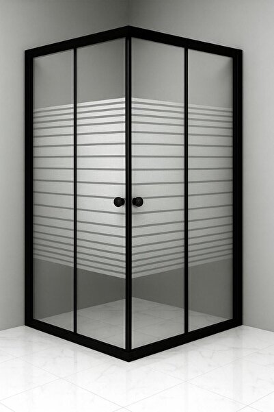 Durul Duşakabin 100x100 Kare Siyah Çizgi Ortası Buzlu 5mm Temperli Cam H 190