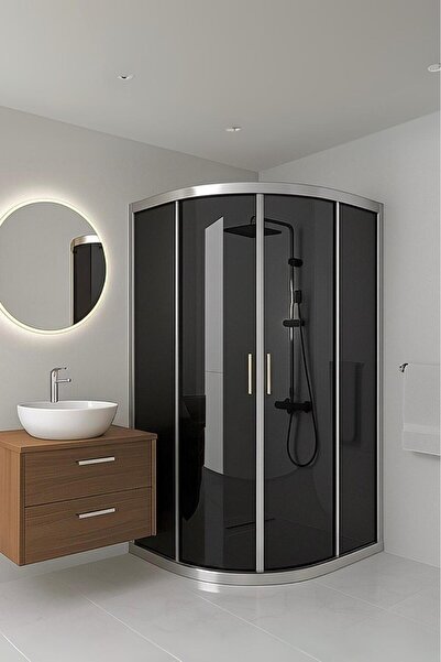 Durul Duşakabin Füme Temper Cam Elegant Seri Oval Krom Profil - Yükseklik: 190 Cm